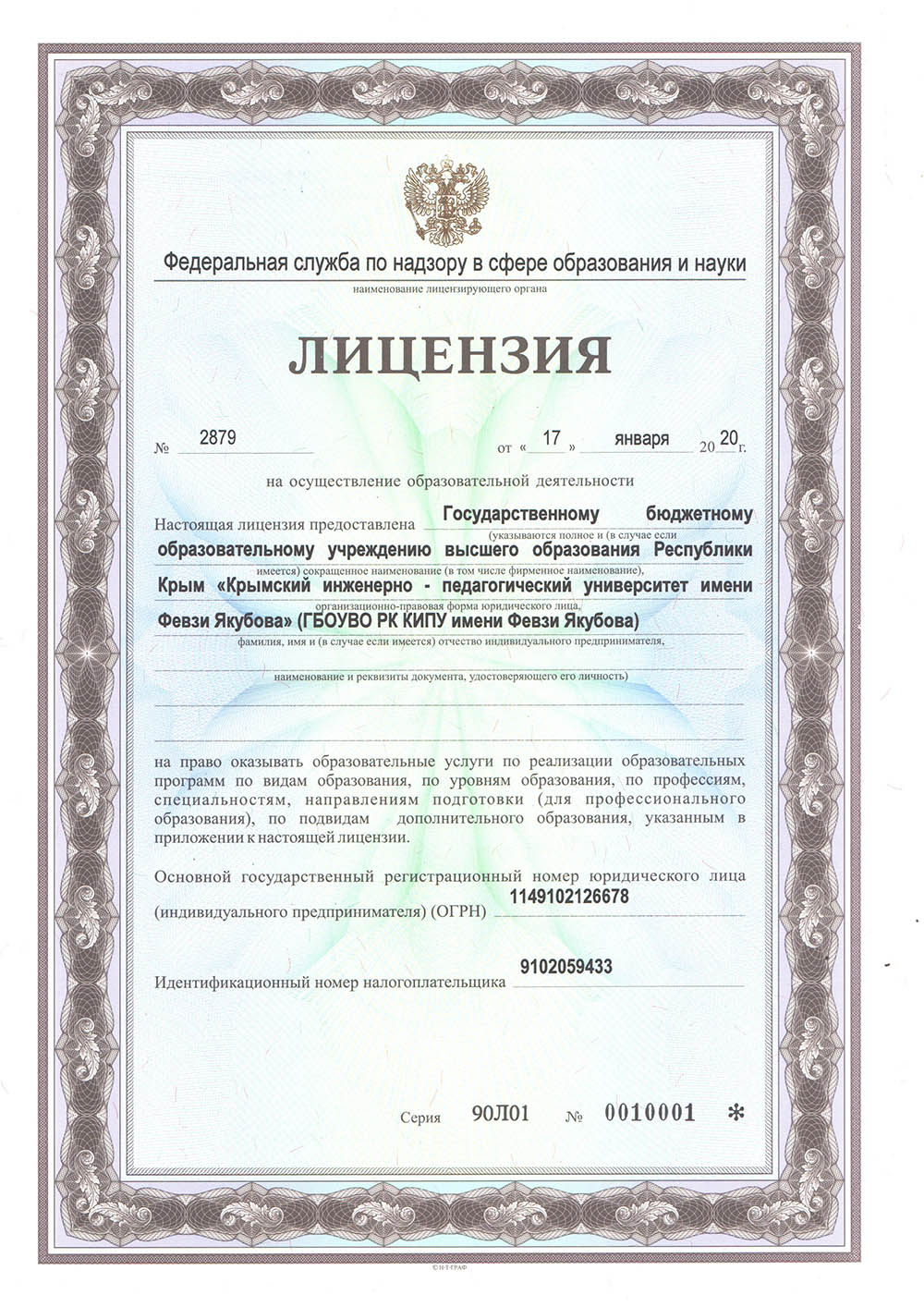 Распоряжение от 27.01.2020 "О переоформлении лицензии ГБОУВО РК КИПУ имени Февзи Якубова" (.pdf).