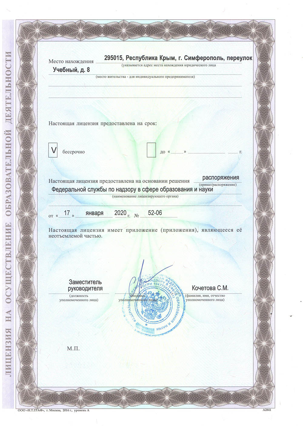Лицензия на право оказывать образовательные услуги с приложениями (.pdf)